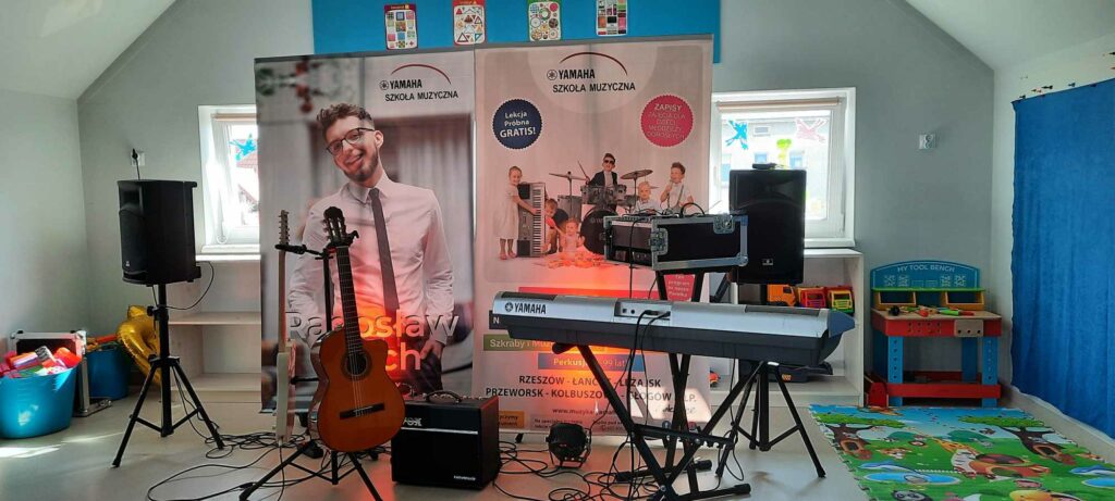 W tym tygodniu nasze przedszkole odwiedziła Szkoła Muzyczna Yamaha. Dzieci miały okazję poznać instrumenty takie jak, gitara klasyczna, gitara elektryczna oraz keyboard. Celem spotkania było rozwijanie zainteresowań muzycznych oraz wzbogacenie wiedzy na temat różnorodnych instrumentów. Przedszkolaki z wielkim zainteresowaniem słuchały ciekawych opowieści prowadzącego na temat instrumentów, biły brawa, a także miały okazję spróbować swoich sił w grze na gitarze.