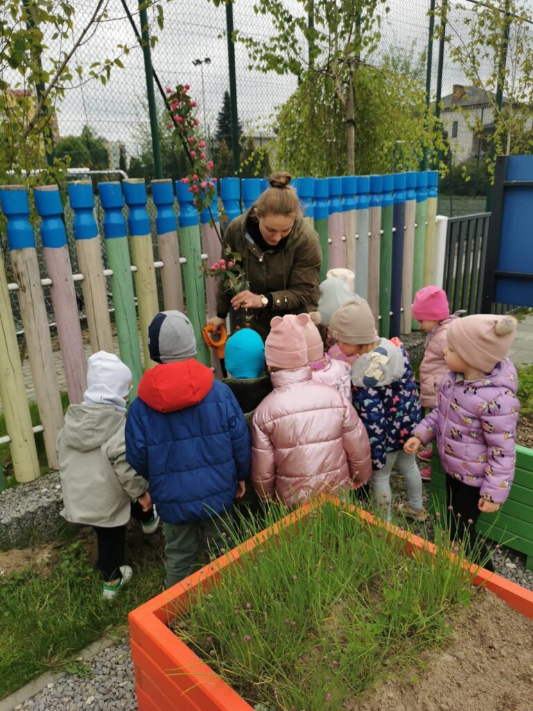 Dzieci uważnie obserwowały w jaki sposób sadzi się drzewa, co jest do tego potrzebne oraz pomagały w ich sadzeniu. Wspólnie udało nam się posadzić sadzonki jarzębiny, wiśni japońskiej oraz jabłoni. Przedszkolaki obiecały, że będą dbać, podlewać i codziennie obserwować wzrost nowych drzewek.