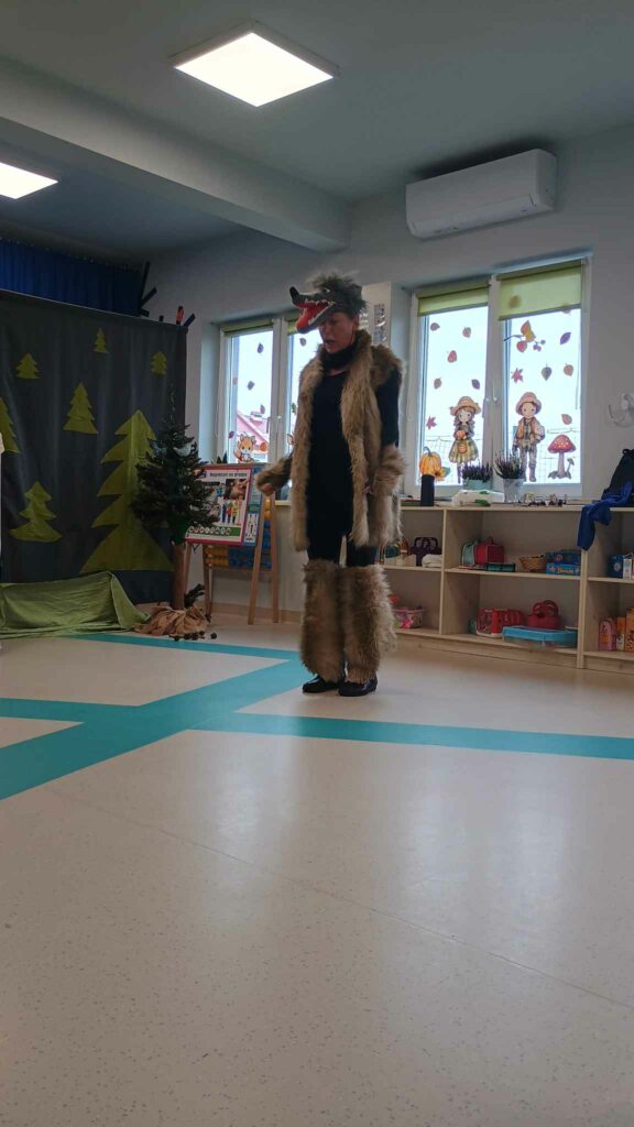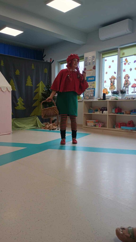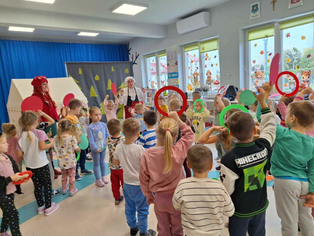 Początkiem października nasze przedszkole, po raz kolejny odwiedził Teatr z Kapelusza, tym razem z przedstawieniem “Czerwony Kapturek”. Przedszkolaki z ogromnym zainteresowaniem śledziły losy Czerwonego Kapturka. Po teatrzyku, dzieci wzięły udział w warsztatach dotyczących bezpieczeństwa, które niosły ze sobą ważne przesłanie, by zawsze być ostrożnym i nie ufać nieznajomym.