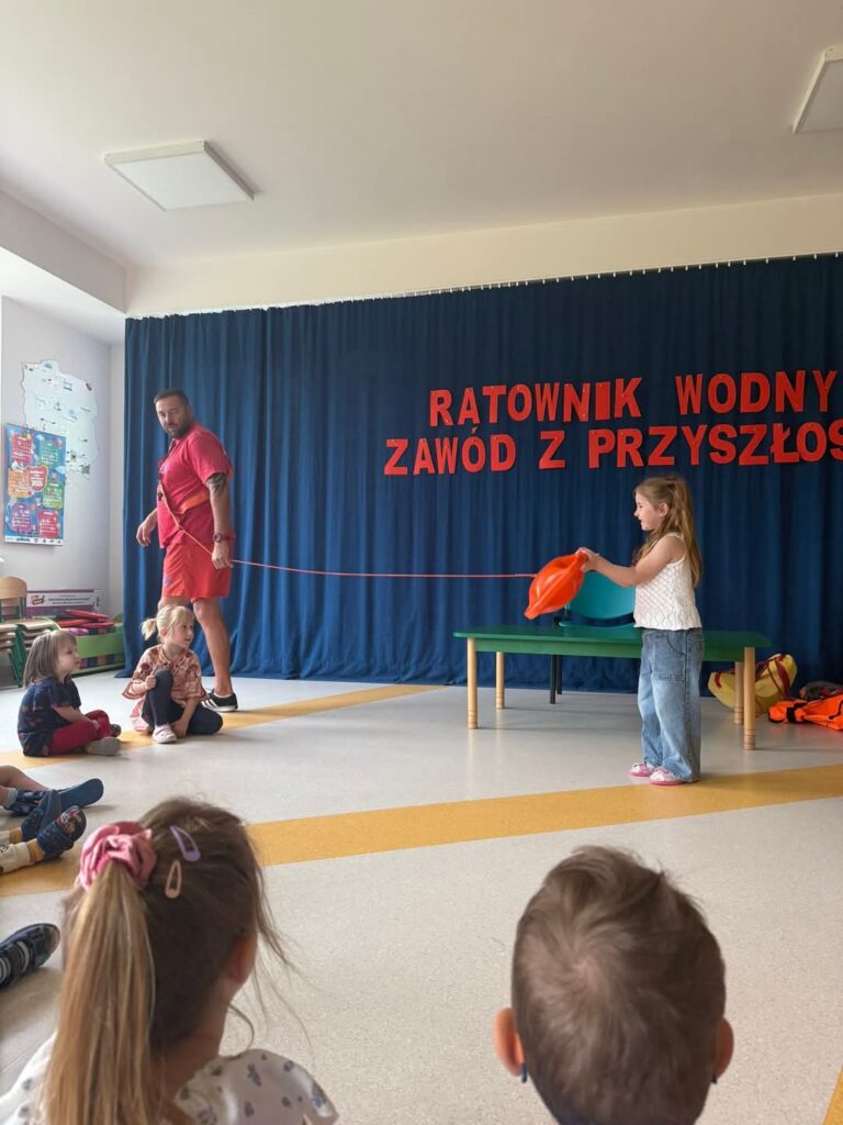 O to zadbał już zaproszony przez nas ratownik wodny, który pokazał nam, jak prawidłowo, a przede wszystkim bezpiecznie kąpać się w morzu i przebywać na słońcu.