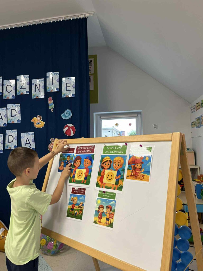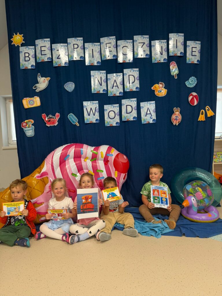 Nasze przedszkole, idąc wszystkim naprzeciw, wzięło udział w akcji “Bezpieczne Wakacje”, mającej na celu informować, jak również edukować dzieci odnośnie zagrożeń czyhających na nas na każdym kroku, zarówno w wodzie, jak i na lądzie.