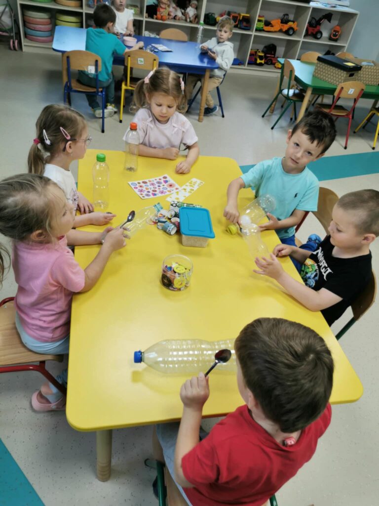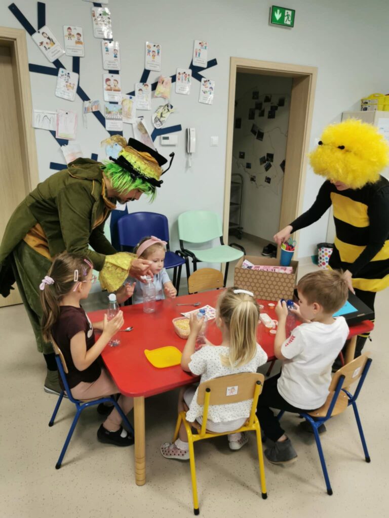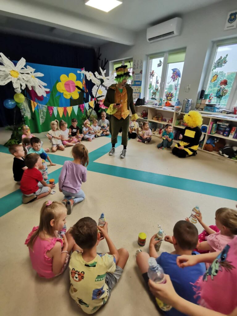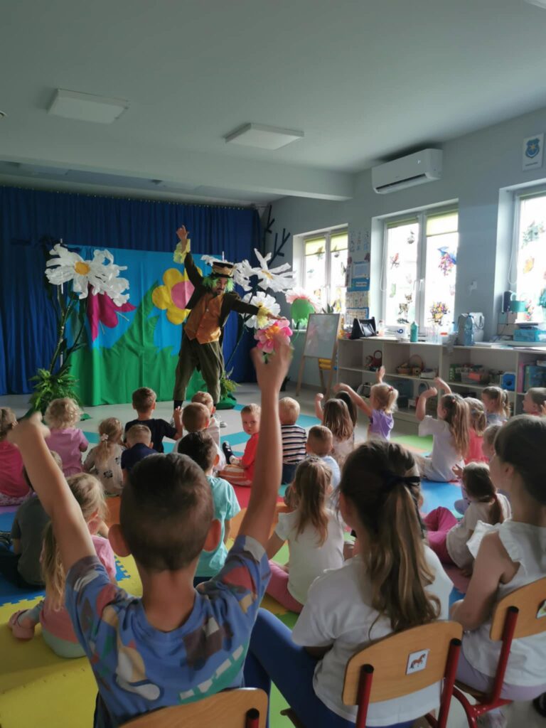 Podczas przedstawienia słychać było wesołe piosenki o ekologii i pięknym świecie. Przesłanie teatru było jasne – dbajmy o nasza planetę! Na koniec dzieci na warsztatach zrobiły instrumenty – grzechotki i bębenki, oraz wspólnie zagrały.
