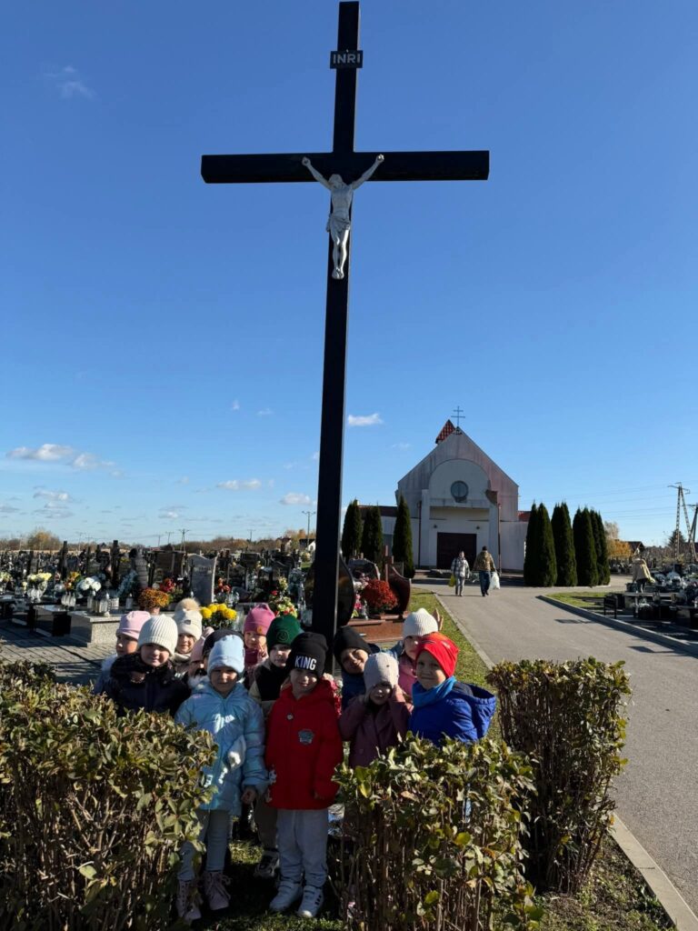 W ostatnich dniach dzieci z naszego przedszkola wybrały się na spacer na stary i nowy cmentarz, aby uczcić pamięć zmarłych. Podczas wizyty przedszkolaki w ciszy i skupieniu zapaliły znicze pod krzyżami oraz na grobach nieznanego żołnierza, oddając hołd tym, którzy poświęcili swoje życie dla ojczyzny. Dzieci wysłuchały krótkiej opowieści o znaczeniu pamięci, szacunku i wdzięczności, jaką jesteśmy winni wszystkim, którzy odeszli. Była to piękna i wzruszająca lekcja patriotyzmu oraz okazja do rozmowy o tradycjach związanych z Dniem Wszystkich Świętych i Zaduszkami. Wspólne zapalenie zniczy stało się dla naszych przedszkolaków symbolem pamięci, dobra i miłości, które trwają mimo upływu czasu.